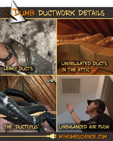 On a hot summer day, the discomfort and inefficiency continues as cooled air gets blown through 140-degree attic ducts. Attic ductwork is such a dumb idea that the National Renewable Energy Lab (www.nrel.gov) published a study entitled “Ducts in the Attic? What Were They Thinking?” in 2010.